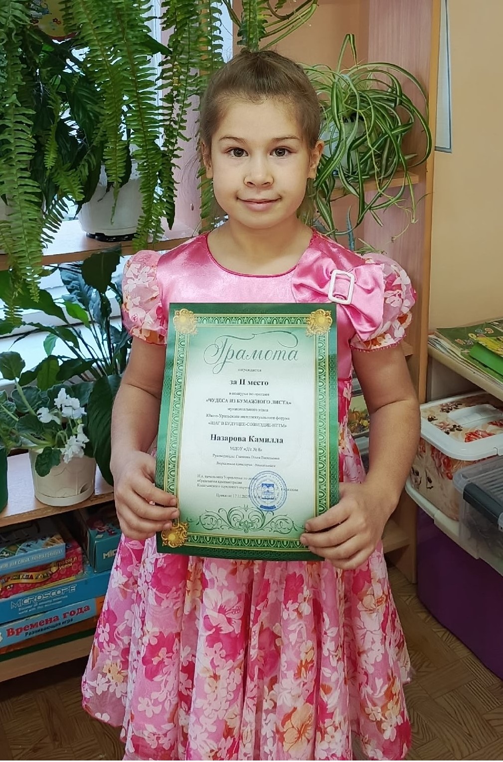 Поздравляем Назарову Камиллу с победой ( II место) в городском конкурсе по оригами "Чудеса из бумажного листа"