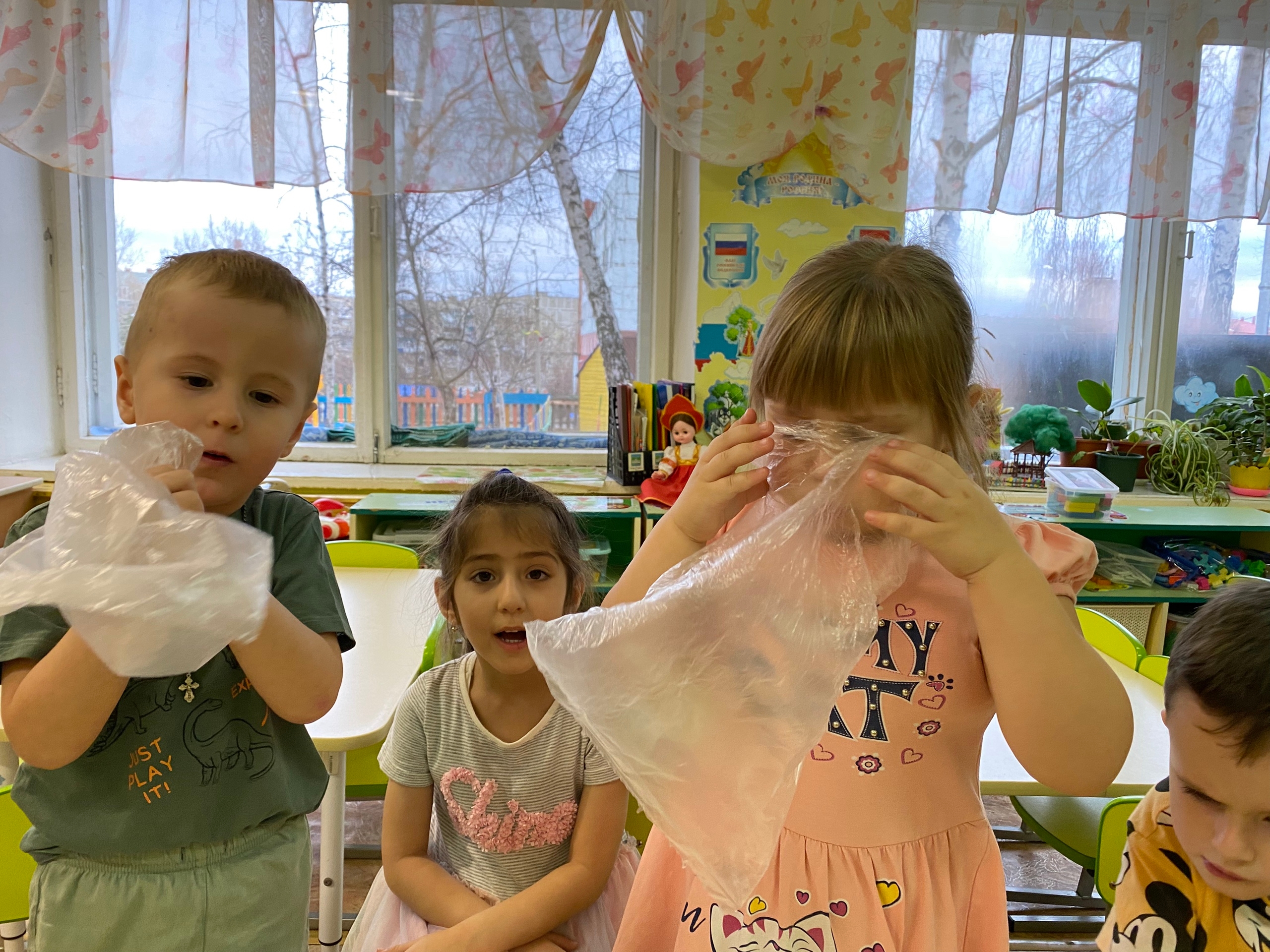 Чтобы доказать существование воздуха, что он занимает место и обладает свойствами, мы с ребятами провели исследование. Поймали воздух с помощью обычных пакетов. Увидели, как пузырьки воздуха выходят из предметов, если их бросить в воду. Использовали трубочку для в